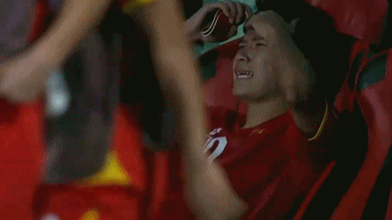 在主裁判吹响90分钟结束的哨声之后,黎文顺在替补席激动落泪,多名越南球员瘫在球场上。