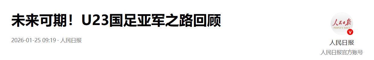 央视新闻:2026年U23男足亚洲杯决赛 中国队收获亚军 创赛事历史最佳战绩