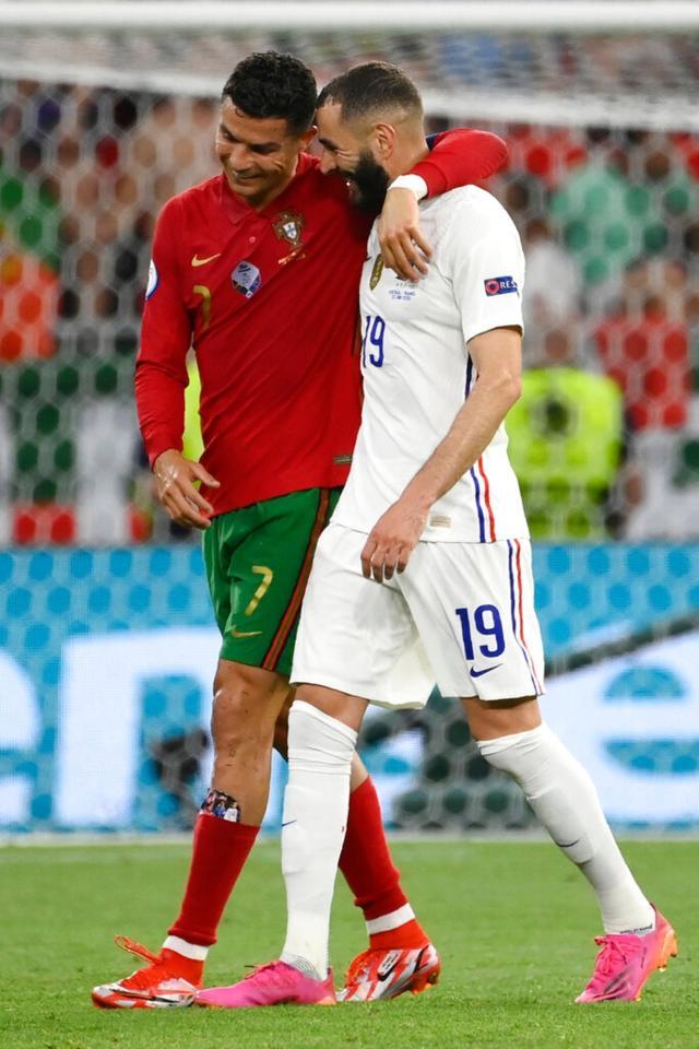 打进两球,虽然没能帮球队获得胜利,但C罗说得上拯救了葡萄牙。拯救了葡萄牙的C罗,心情看起来还不错。半场比赛结束时,他和本场最终同样打进两球的本泽马直接聊了起来,不光勾肩搭背叙说旧事,还直接交换了球衣。当曾经的青年渐渐老去,彼此依然更了解对方的故事,而这份老家伙间的惺惺相惜,也让C罗本场上佳的发挥有更多的谈资和传奇色彩。